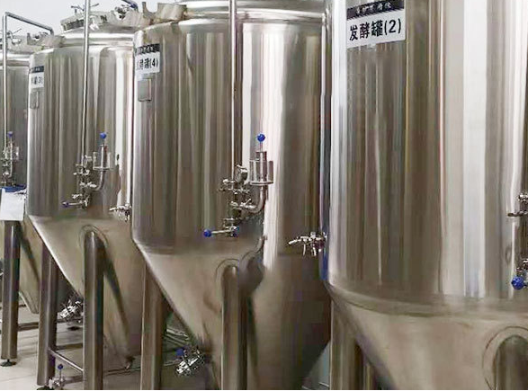 啤酒發(fā)釀罐比如冷卻夾套錐形發(fā)酵罐,它冷卻夾套的位置在柱體。上部冷卻夾套的頂端一般位于啤酒液面以下15cm,柱體下部冷卻夾套的頂端則位于50%液位以下15cm,錐角冷卻夾套盡量靠近錐底。